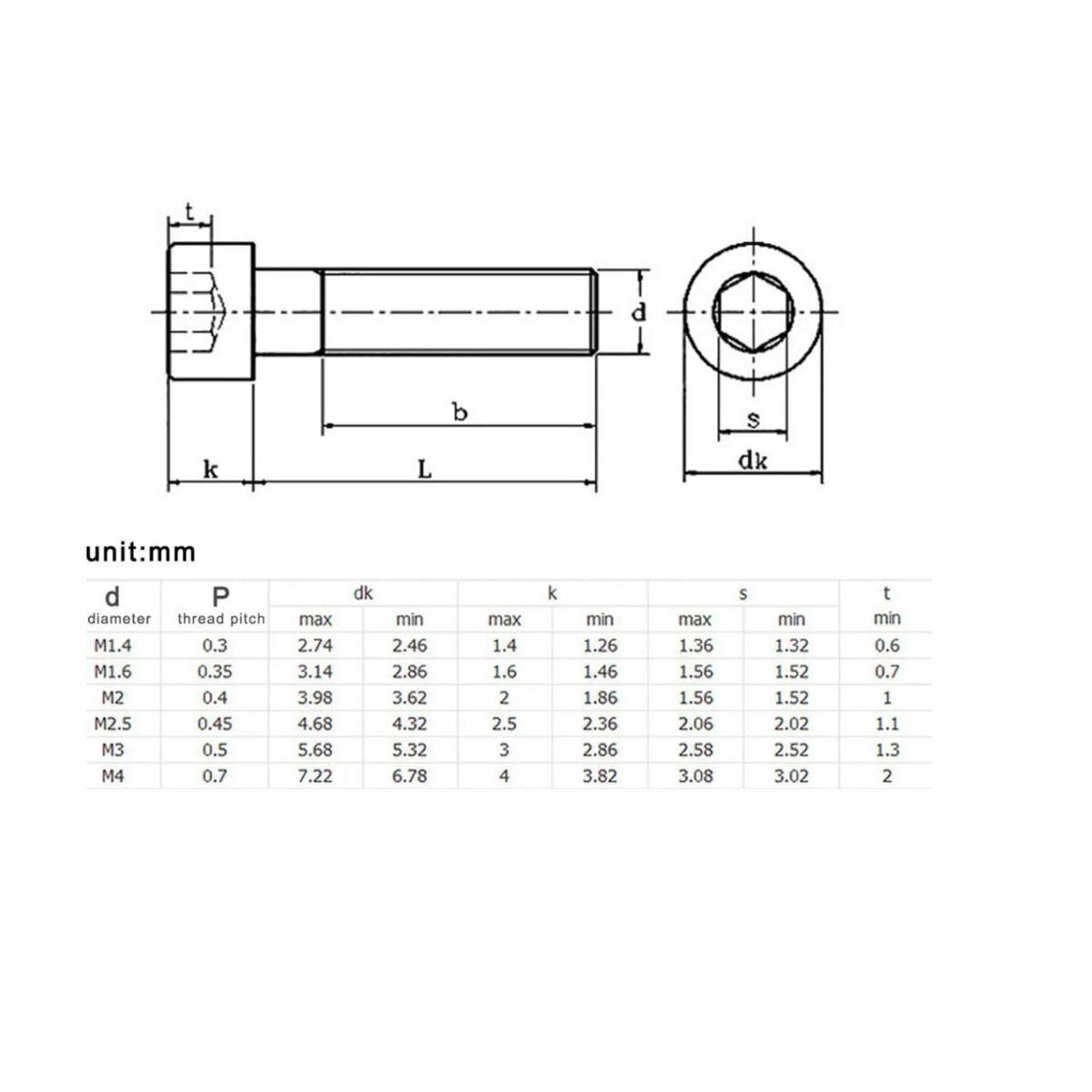 DIN912 M1.6 M2 M2.5 M3 M4 de acero inoxidable